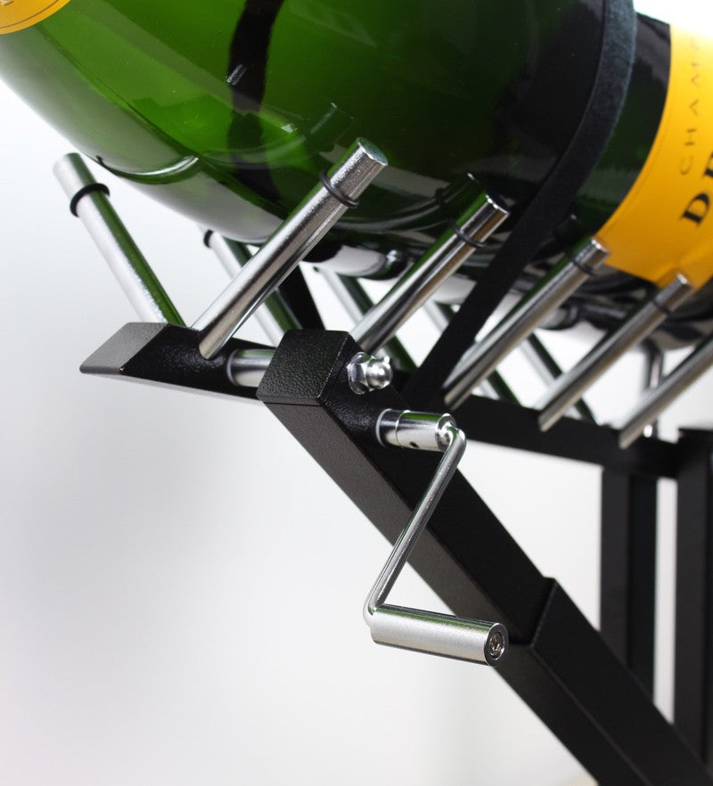 The VCANTER® RUSTICO 12 liter version gives you the opportunity to elegantly and simply pour and serve 1.5 liters to 12 liters (also 15 liters of champagne) bottles. The VCANTER® is a decanting cradle and decanting machine that leaves nothing to be desired in terms of professionalism and design. With its easy-to-use gear arm and a very stable bottom plate, the bottles are safe and stable on the device. The VCANTER® RUSTICO is made of steel, powder coating and rustic chrome finish.Production Time: 2-3 weeks